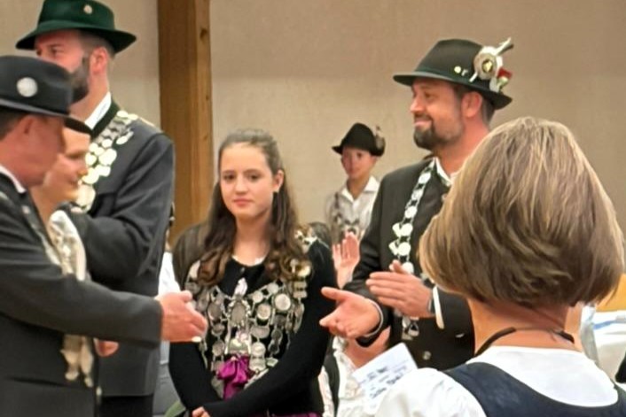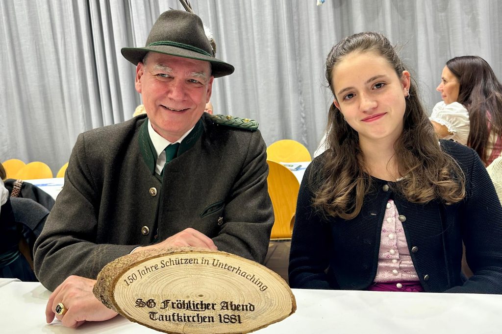 Die Schützengesellschaft Unterhaching feierte am Samstag, den 11.10.2025 in der Hachinga Halle ihr 150 jähriges Bestehen. Der Gau München Ost-Land verband die Feierlichkeit mit dem Gaukönigsball. Nach den Eröffnungsreden des 1. Bürgermeisters Wolfgang Panzer, Landrats Christoph Göbel und der Landtagsvizepräsidentin Claudia Köhler wurden Preise aus diversen Schießveranstaltungen verteilt und auch die Jubiläumsscheibe überreicht. Unsere Schützengesellschaft vertraten 2. Schützenmeister Dirk Matten zusammen mit 3. LP-König Christian Eiden und Tochter Annika im Amt der 3. Jugend-Königin. Nach dem Einmarsch der Vereins-Könige hinter der Gau-Standarte wurden die neuen Gau-Könige proklamiert und der Ball mit dem Tanz der Könige und Königinnen eröffnet. Die musikalische Umrahmung des gesamten Festabends übernahm die Let`s Dance Partyband.