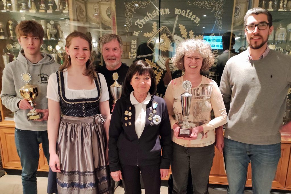 Nach gut zwei Jahren Pause veranstaltete unsere Schützengesellschaft mit 18 Teilnehmern wieder das erste „KO-Kranzlschießen“. Unsere Sportleitung Stefan Schallmoser und Peter Winner erklärten den Ablauf. Zwei ausgeloste Teilnehmergruppen, freischießende Schützen und Auflageschützen, traten im ersten Durchgang in der entsprechenden Gruppe gegeneinander an. Ohne Probeschuß wurden zehn Schüsse zur Wertung abgegeben. Derjenige mit der besten Punktzahl in der Ring- und Teilerwertung, kam in die nächste Runde, der Finalrunde. Mit dieser speziellen „Teilerwertung“ haben auch Nichtleistungsschützen die Chance, in diese Runde zu kommen. Im Finale wird es wettkampfmäßig. Hier ging es dann wieder nur auf „Ringwertung“. Der Ablauf ist genau festgelegt, jeder Teilnehmer darf nur zehn Schüsse, einzeln nach „3 – 2 – 1 … Start“-Freigabe des Wettkampfleiters, abgeben. Die Abgabe des jeweiligen Schusses muss in der vorgegeben Zeit von 75 Sekunden erfolgen. Unser Johann Gstattenbauer durfte in Vertretung die Rolle des Wettkampfleiters übernehmen, denn beide Sportleiter standen selbst im Finale. Nach jedem Schuss wurde das Ergebnis offen für alle Anwesenden von Michael Müller verlesen. So entstand für alle Finalschützen eine hochmotivierende Anspannung, da sich alle Anwesenden noch als jubelnde Zuschauer hinter dem Schießstand versammelten. Nach 30 Minuten wurde das Finalschießen erfolgreich beendet, die Erstplatzierten standen fest. Den ersten Platz bei den Auflageschützen belegte Gundula Werlein, bei den Freischießenden Vicky Matten. Während Stefan die weiteren Plazierungen ausarbeitete, gratulierten Michael Müller und Johann Gstattenbauer Wolfgang Herrmann zum „LP-Brezn-König“ sowie Leopold Dinkel zum „Jugend-Wurst-König“. Constantin Rosengarten bekam die Königsnadel für den „Jugend-Schützenkönig“, die Königskette wurde ihm schon vorab überreicht. Die Plazierungen des KO-Kranzlschießens wurden von Stefan noch bekanntgegeben, ebenso die  Übergabe der drei Wanderpokale, die auf Teilerwertung pararell mit dieser Veranstaltung ausgeschossen wurden. Den Wanderpokal in der Kategorie Jugend erhielt Leopold Dinkel, für Luftpistole Claus Pauli sowie für Luftgewehr Kirsten Bürger. Bei den Kranzlschießen erhielten alle Teilnehmer einen Preis, die Erstplazierten hatten die größte Auswahlmöglichkeit unter den freien Preisen. Vicky und Gundula hatten demzufolge die Wahl der Qual. Alle Beteiligten erfreuten sich über die erreichten Ergebnisse und der damit verbundenen Preise, Karin hatte beim Einkauf der Preise wohl wieder für jeden das Richtige gefunden. Ein guter Start nach dem Motto, runter vom Sofa, „Auf gehts…“