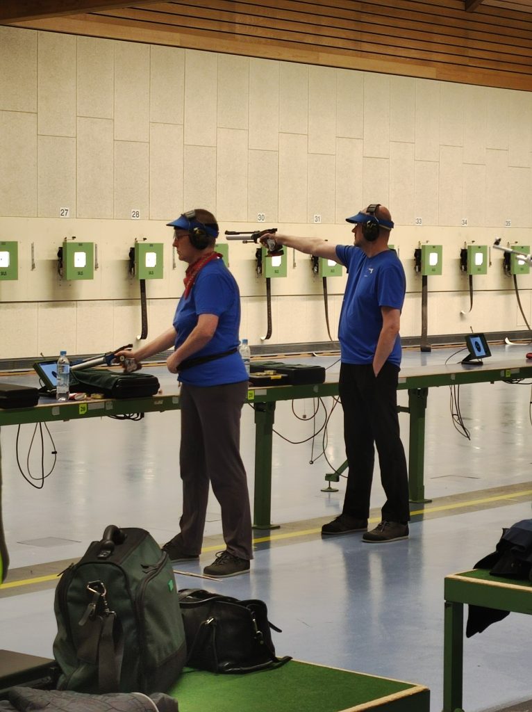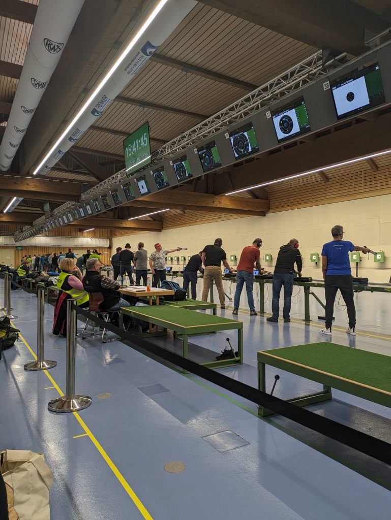 Dort zu schießen, lässt selbst bei erfahrenen Schützen den Puls etwas hoch gehen. Die besondere Atmosphäre – angefangen bei der Waffenkontrolle bevor es an den Stand geht bis hin zum eigentlichen Schießen mit genau angesagter Vorbereitungszeit, Zeit für Probeschießen und schließlich den Wettkampfschießen in der großen „Schießhalle“ ist schon etwas Besonderes.