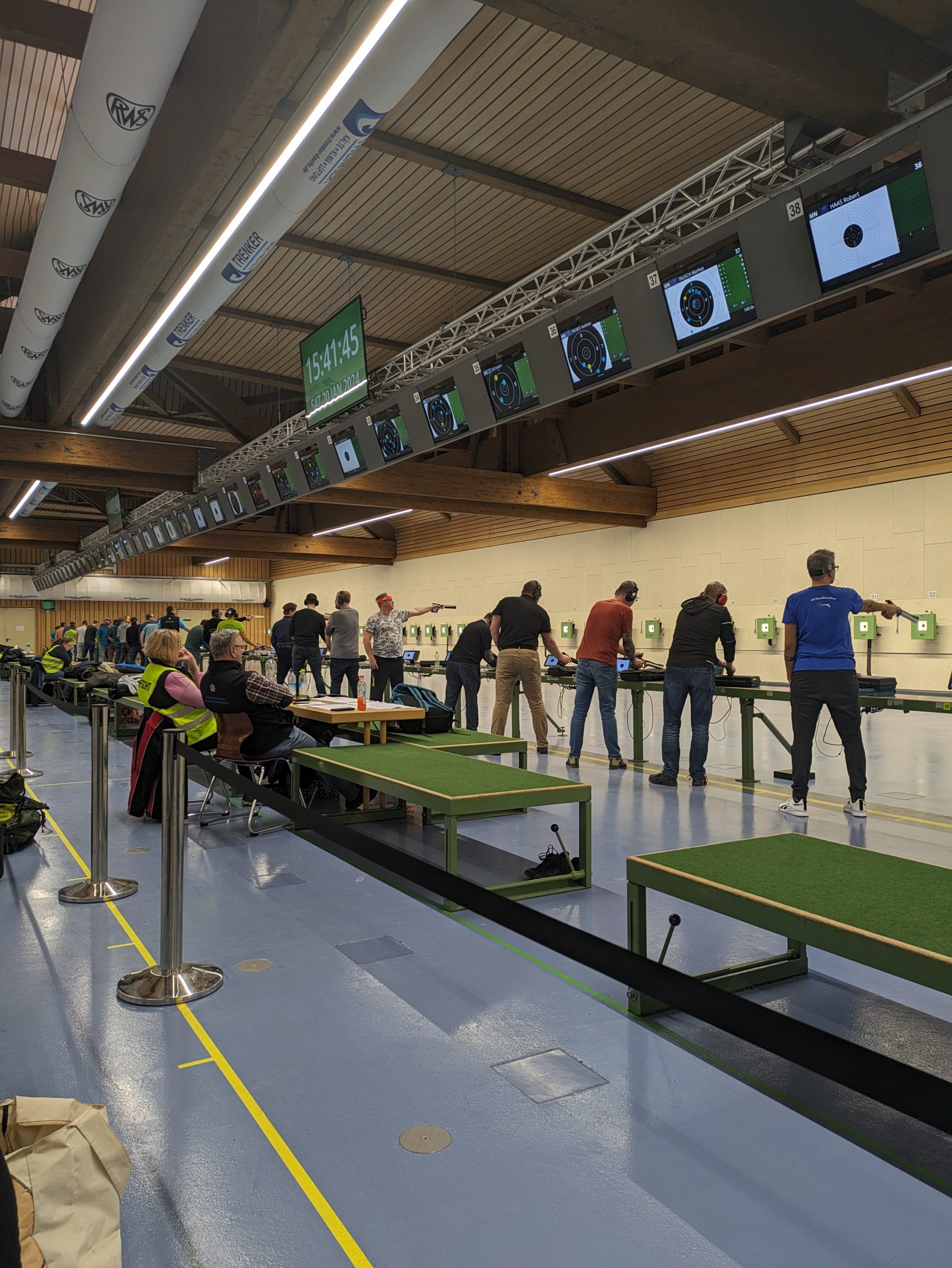 Dort zu schießen, lässt selbst bei erfahrenen Schützen den Puls etwas hoch gehen. Die besondere Atmosphäre – angefangen bei der Waffenkontrolle bevor es an den Stand geht bis hin zum eigentlichen Schießen mit genau angesagter Vorbereitungszeit, Zeit für Probeschießen und schließlich den Wettkampfschießen in der großen „Schießhalle“ ist schon etwas Besonderes.